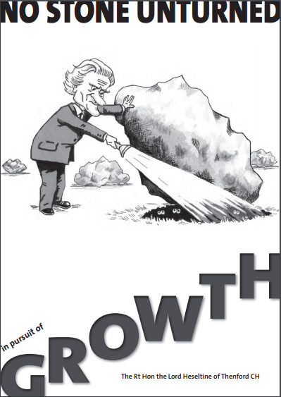 Heseltine was recruited into the Treasury, with Osborne’s approval, to “advise” on infrastructure development and urban renewal, because of his 2012 report “No Stone Unturned In Pursuit Of Growth” that purported to be a putative blueprint for stimulating economic growth.