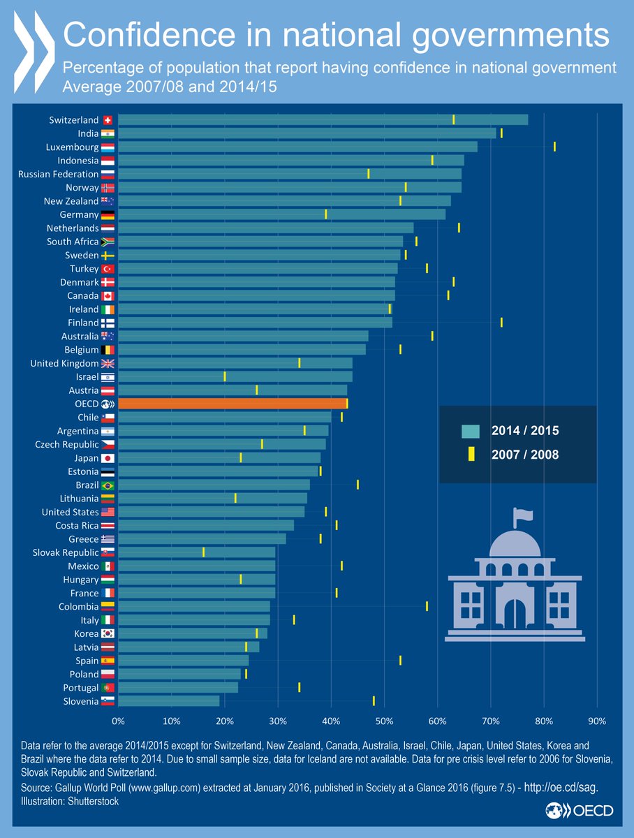 confidence-in-govt-switz-topThe Swiss manage successfully to hold referendums on issues other than major constitutional questions like their voting system or EU membership. It’s no coincidence, to my mind, that the Swiss, who have the most direct say in their government, via localisation & frequent referendums, express the highest confidence in their government and regularly show highest public-engagement in politics. We can achieve the same. We need more referendums, not fewer.