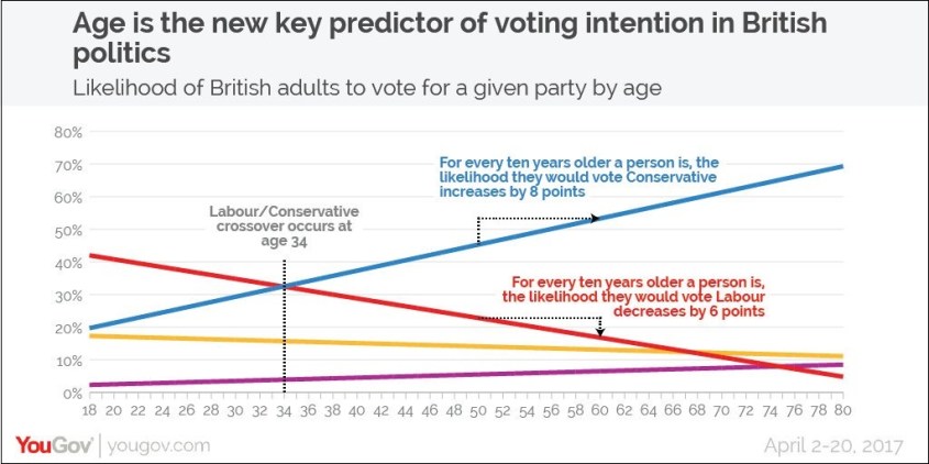 Conventional psephology held that most had grown out of their youthful flirtation with socialism by about 30, by which time advancing careers, along with marriage, family and mortgage responsibilities, had altered their perspective. Indeed, as late as April this year, a YouGov poll suggested that the Left-Right crossover point comes roughly at age 34.